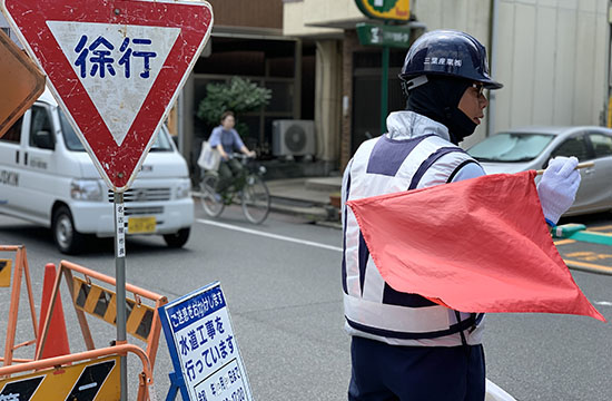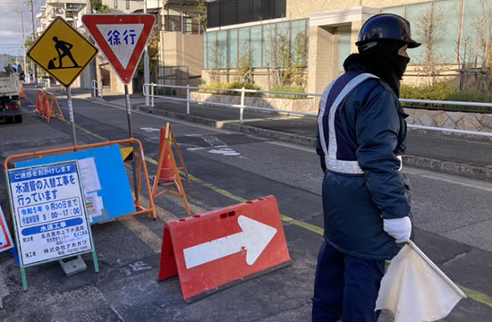 建設・土木工事の現場付近を通る一般歩行者や近隣住民の安全確保と、一般車両の誘導を行っております。三葉産業株式会社では、教育訓練の行き届いた警備員を派遣することにより、高度の目配り・気配り・心配りで良質の警備サービスを提供しています。